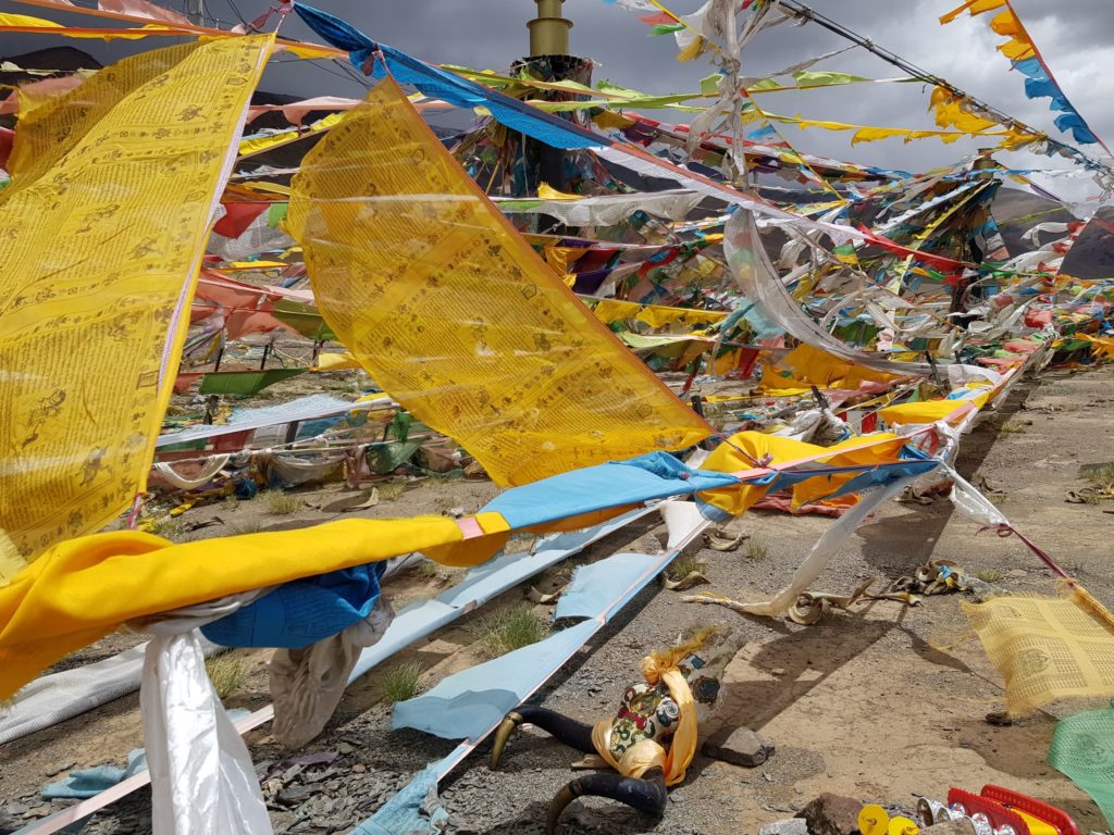 High passes are becoming a little passe at this point, but there was a fairly early one at 5,234m – which is fairly high, and fairly cold. There was another one a little lower – only 4,920m – but a little more picturesque with plenty of prayer flags, many little piles of rocks-on-rocks with prayer flags, views, and some twisty roads.